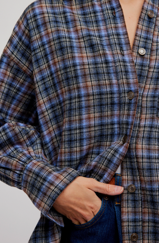Free People : Ashley Flannel in Blue Patte