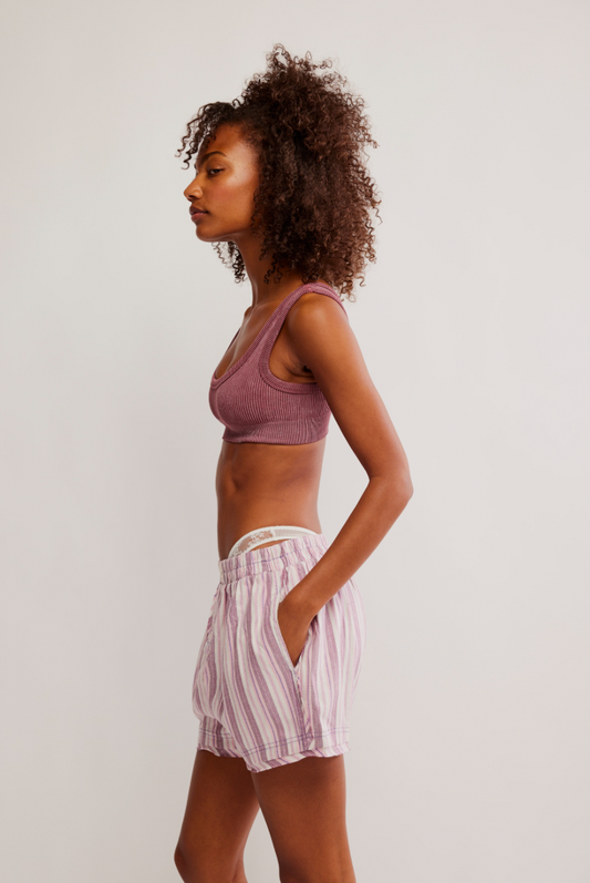 Free People : Day to Day Flannel Boxer in Blue Combo