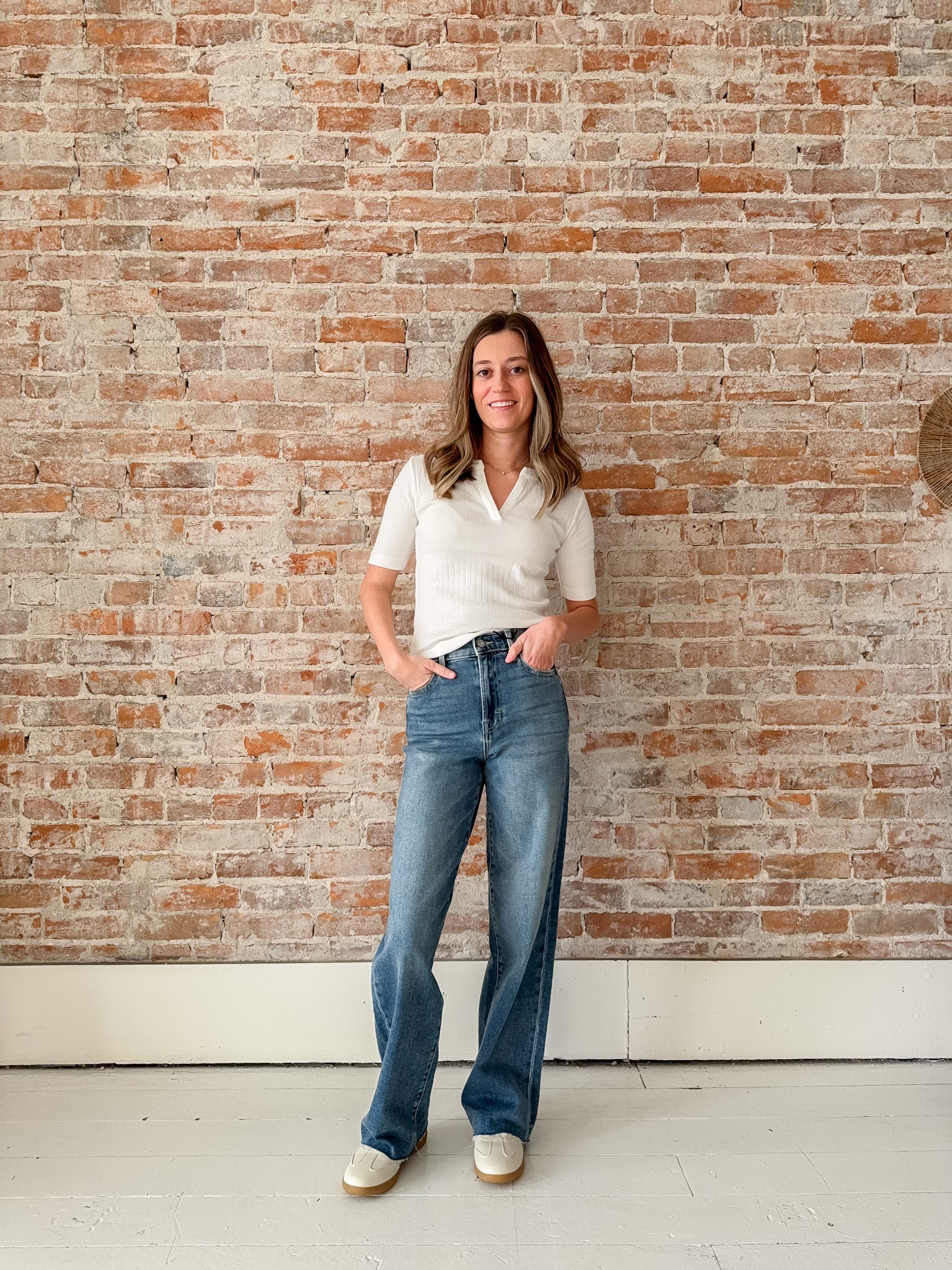 Meet your new favorite go-to: the Logan Jean in Medium Dark Wash. These high-rise dad jeans bring that effortlessly chic vibe with a wide, straight leg that moves with you thanks to the built in spandex. Whether you're chasing adventures or lounging in style, these jeans combine comfort and sophistication for days when you want to look great without trying too hard.